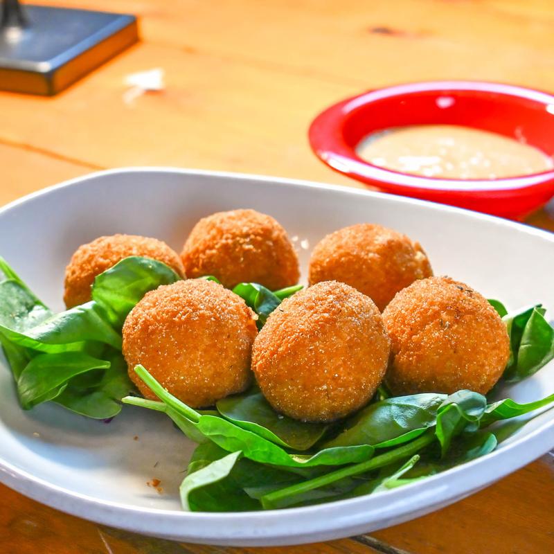 Boudin sausage rolled in seasoned breadcrumbs and deep-fried to a golden crunch. Served with spicy Creole mustard or remoulade
