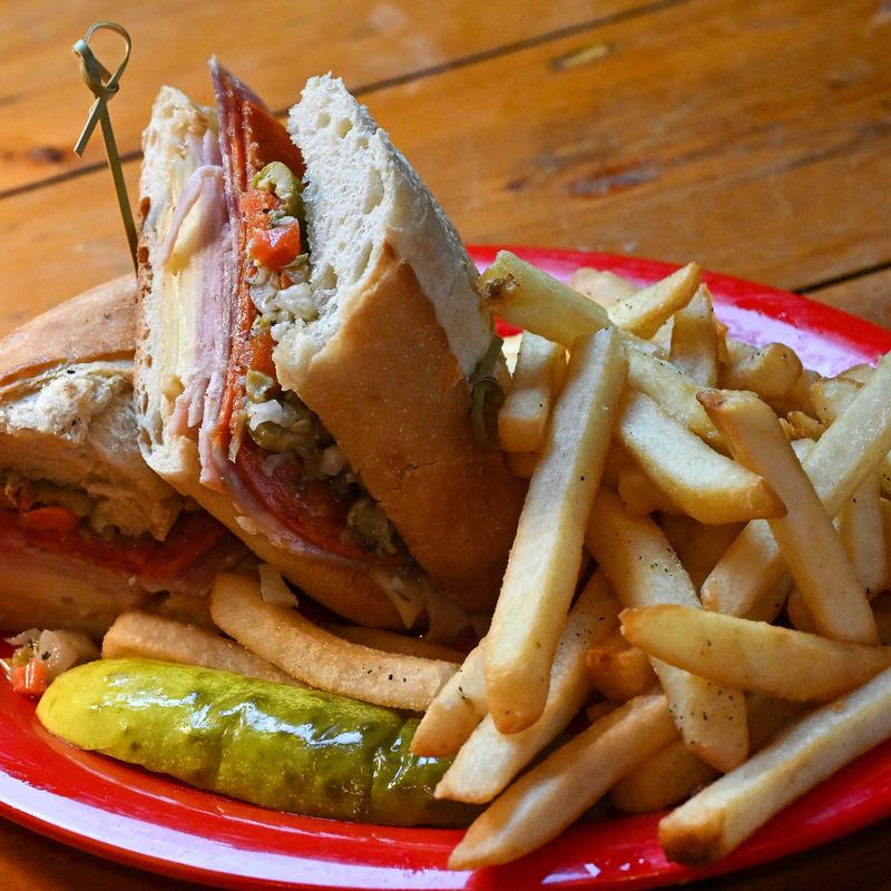 Boar's Head ham, salami, pepperoni, Swiss and Provolone cheeses, house olive relish, spicy mustard, served on French bread