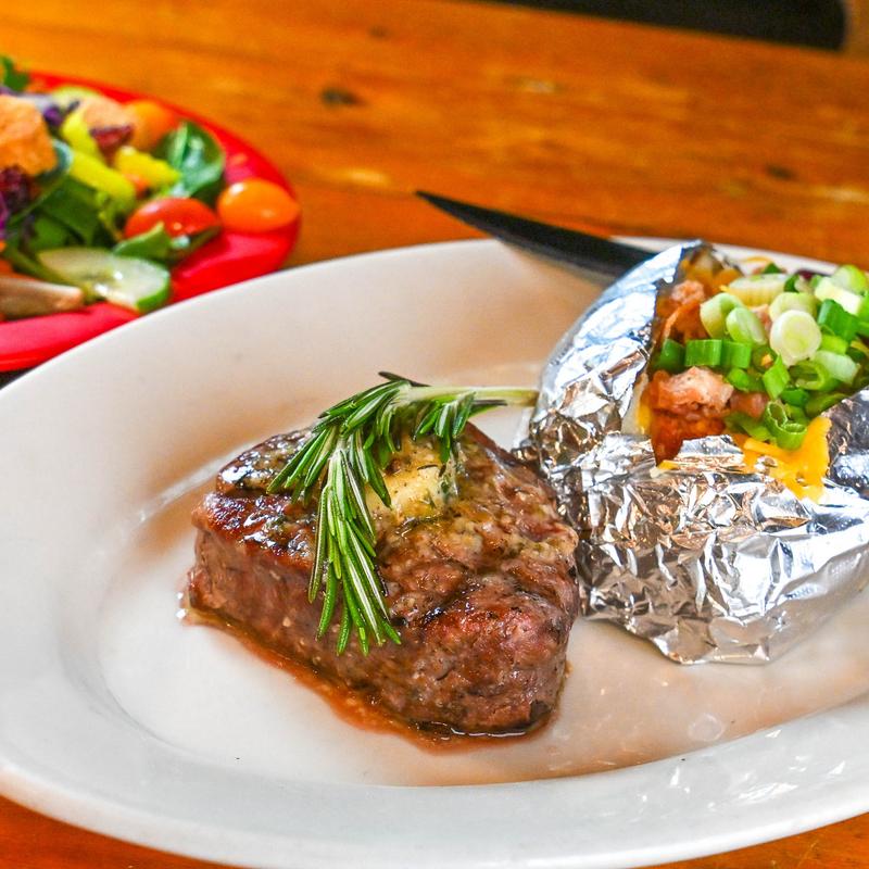 All entrees served with a choice of two side Items: pasta salad, potato salad, broccoli salad, coleslaw, fries, dressed baked potato, macaroni & cheese, chef's vegetable du jour