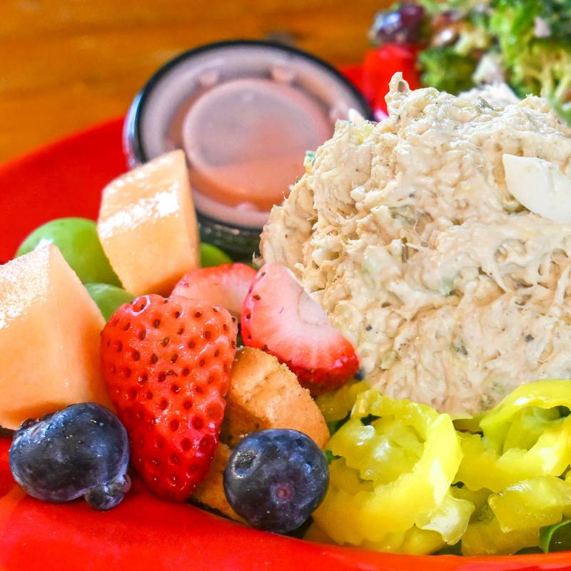 Your choice of chicken salad or tuna salad served on a bed of chef's spring mix. Comes with your choice of two side items: fruit, pasta salad, potato salad, or broccoli salad