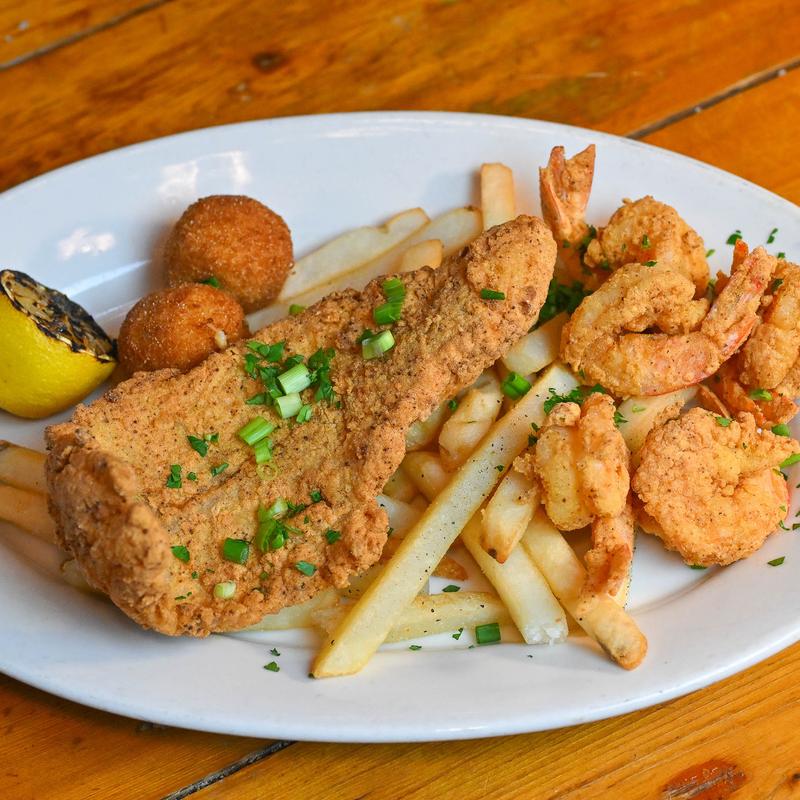 A hearty combo of golden-fried farm-raised catfish and hand-breaded shrimp, served with tartar or cocktail sauce