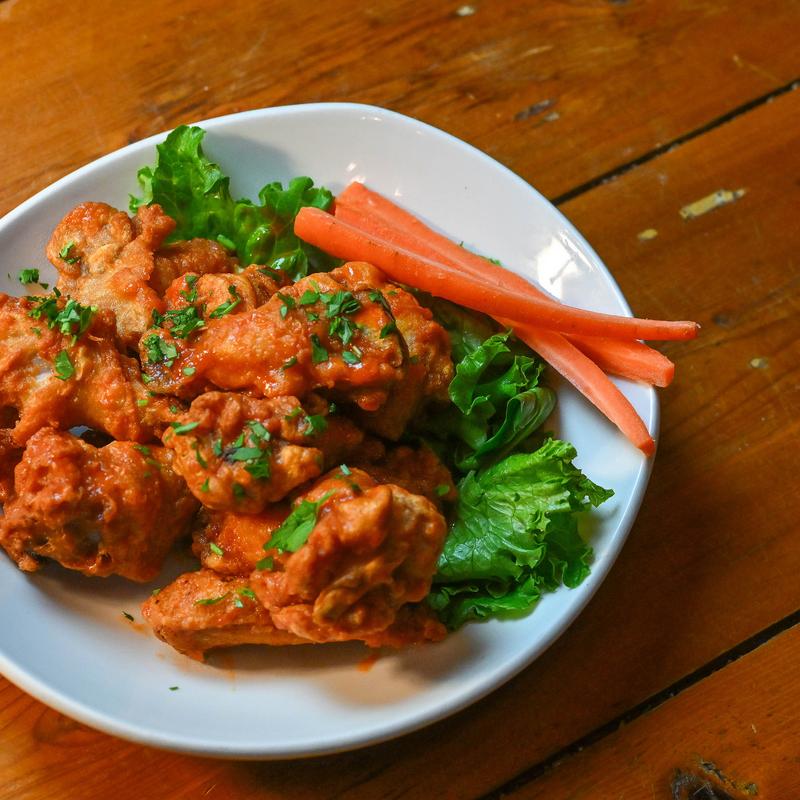 9 for $13.00, 18 for $26.00, 25 for $37.00 • Crispy, juicy house-seasoned wings tossed in your choice of bold sauces: buffalo, garlic parmesan, BBQ, or naked. Served with ranch or blue cheese dressing and celery sticks